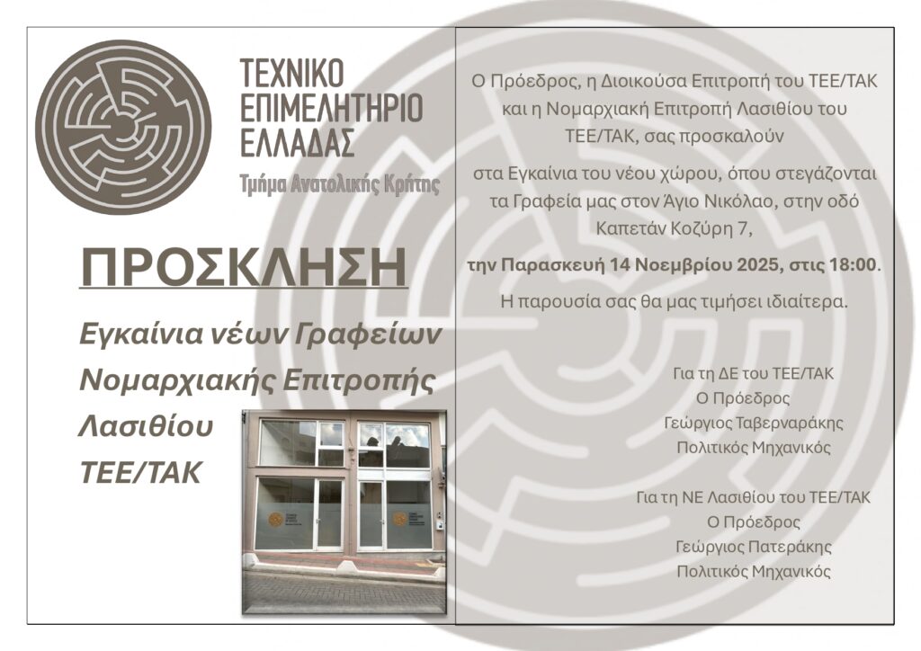 ΠΡΟΣΚΛΗΣΗ-ΕΓΚΑΙΝΙΑ-ΓΡΑΦΕΙΩΝ-ΝΕ-ΛΑΣΙΘΙΟΥ-ΤΕΕ-ΤΑΚ